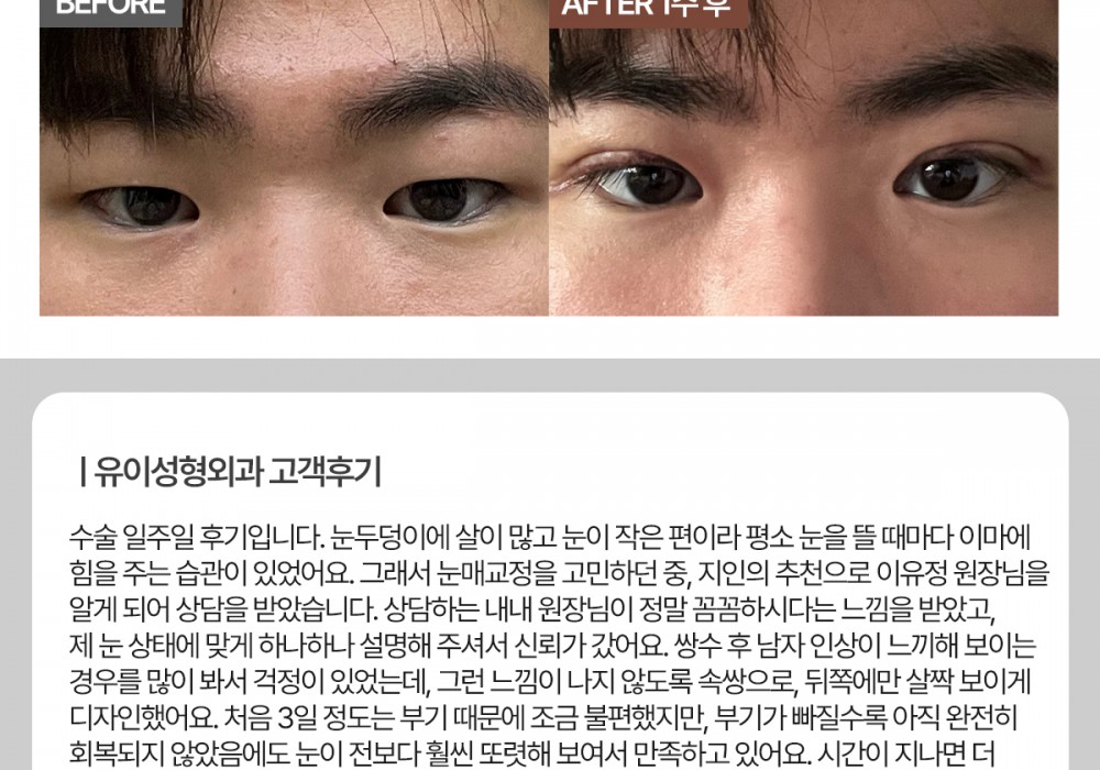 '수술 후 출혈, 감염, 염증 등의 합병증이 있을 수 있으며 주관적인 만족도는 개인마다 차이가 있을 수 있으므로 의사와 상의하시기 바랍니다.'