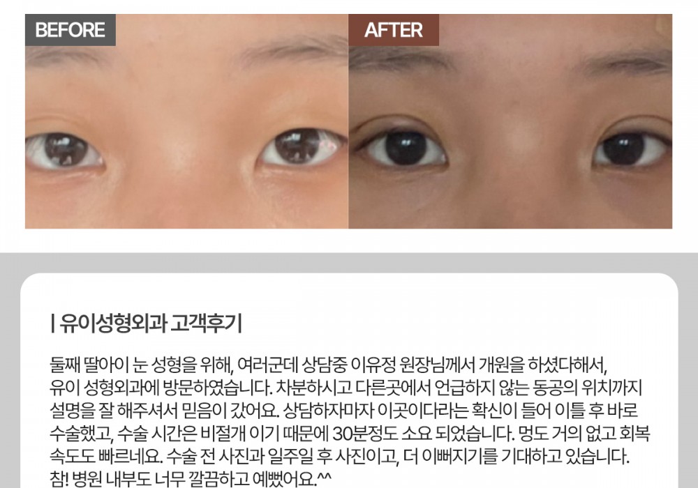 '수술 후 출혈, 감염, 염증 등의 합병증이 있을 수 있으며 주관적인 만족도는 개인마다 차이가 있을 수 있으므로 의사와 상의하시기 바랍니다.'