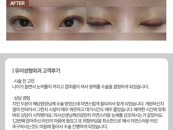 '수술 후 출혈, 감염, 염증 등의 합병증이 있을 수 있으며 주관적인 만족도는 개인마다 차이가 있을 수 있으므로 의사와 상의하시기 바랍니다.'