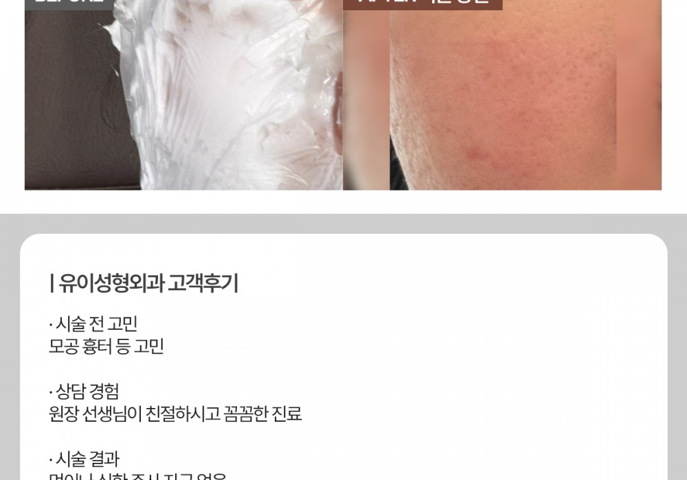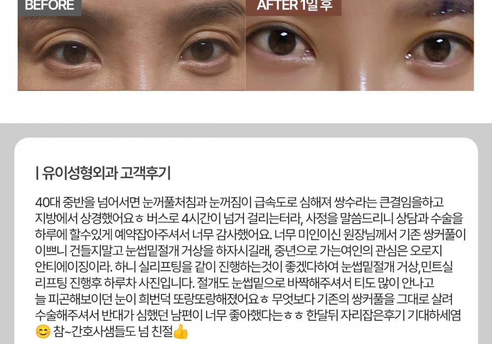 '수술 후 출혈, 감염, 염증 등의 합병증이 있을 수 있으며 주관적인 만족도는 개인마다 차이가 있을 수 있으므로 의사와 상의하시기 바랍니다.'