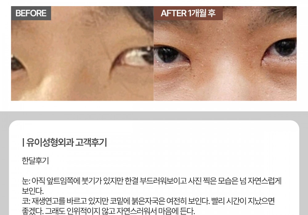 '수술 후 출혈, 감염, 염증 등의 합병증이 있을 수 있으며 주관적인 만족도는 개인마다 차이가 있을 수 있으므로 의사와 상의하시기 바랍니다.'