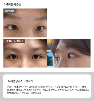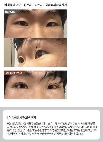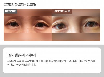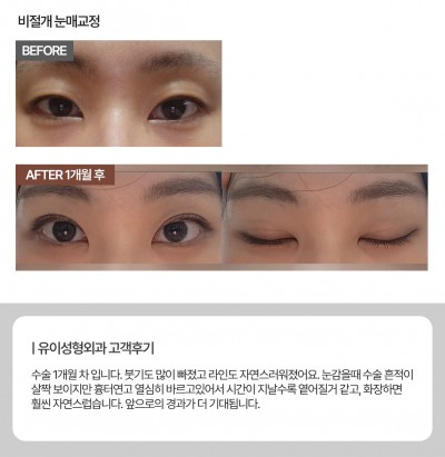 눈매교정술은 보통 쌍꺼풀 라인을 만들면서 눈꺼풀을 들어 올리는 근육의 힘을 조절하여 눈 뜨기가 편안하게 만들어 주고 선명하고 또렷한 눈매로 개선해 주기때문에 심미적·기능적인 부분에 모두 효과적입니다.