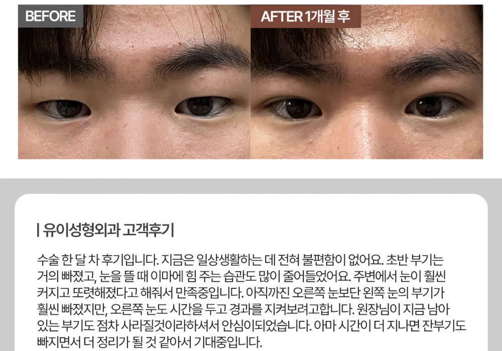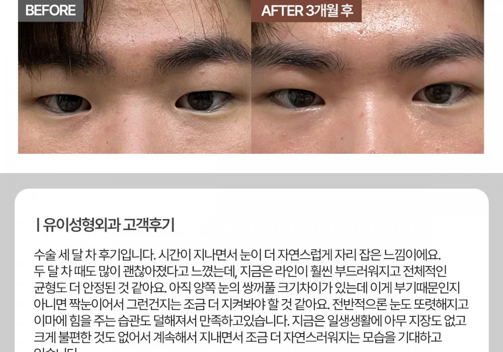 '수술 후 출혈, 감염, 염증 등의 합병증이 있을 수 있으며 주관적인 만족도는 개인마다 차이가 있을 수 있으므로 의사와 상의하시기 바랍니다.'