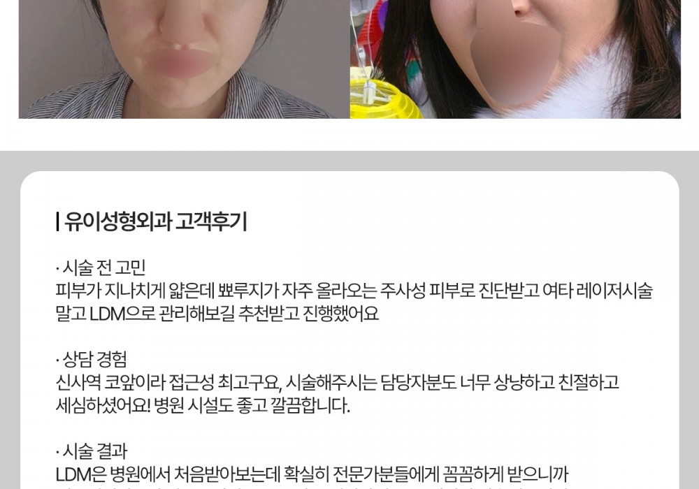 '수술 후 출혈, 감염, 염증 등의 합병증이 있을 수 있으며 주관적인 만족도는 개인마다 차이가 있을 수 있으므로 의사와 상의하시기 바랍니다.'