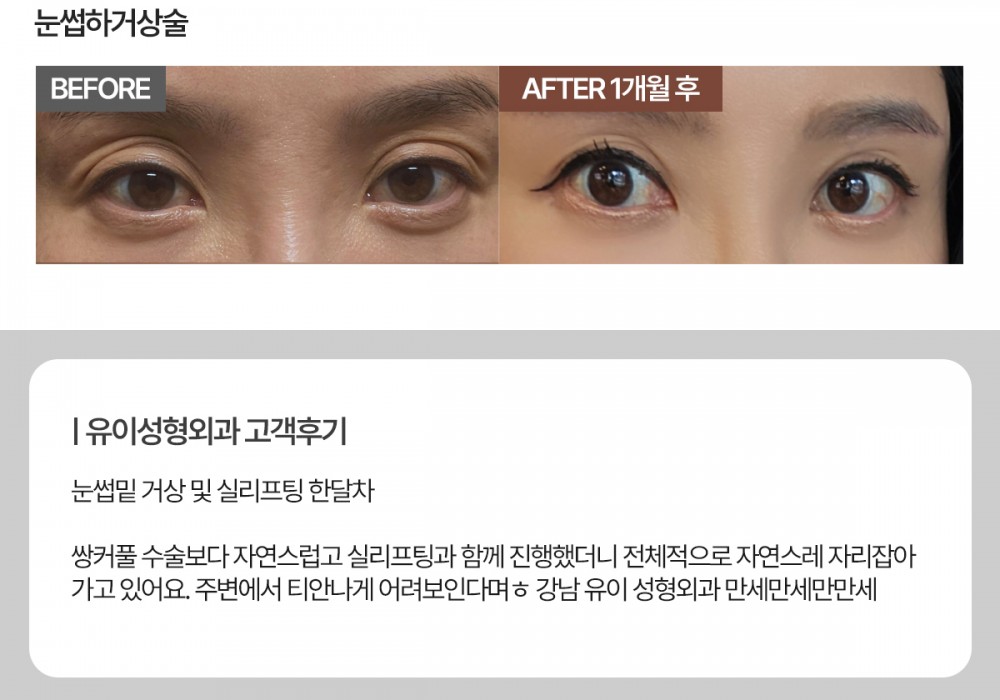 '수술 후 출혈, 감염, 염증 등의 합병증이 있을 수 있으며 주관적인 만족도는 개인마다 차이가 있을 수 있으므로 의사와 상의하시기 바랍니다.'