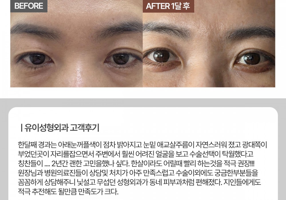 '수술 후 출혈, 감염, 염증 등의 합병증이 있을 수 있으며 주관적인 만족도는 개인마다 차이가 있을 수 있으므로 의사와 상의하시기 바랍니다.'