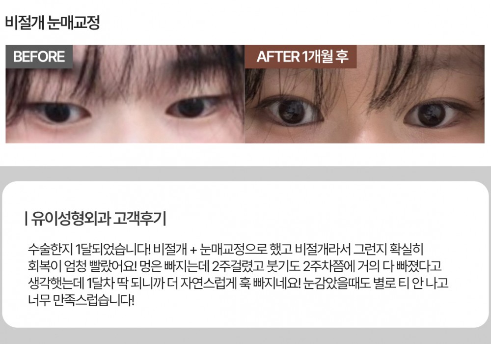 '수술 후 출혈, 감염, 염증 등의 합병증이 있을 수 있으며 주관적인 만족도는 개인마다 차이가 있을 수 있으므로 의사와 상의하시기 바랍니다.'