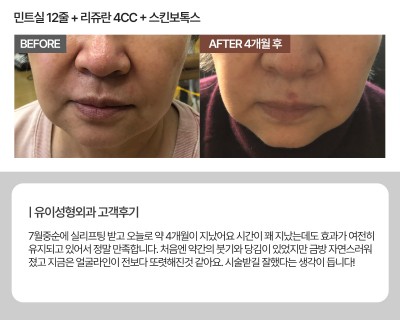 | 개선부위 | 하안면부 전반적인 부위 (팔자 및 입가주름, 마리오네트, 심부볼, 이중턱 등) |